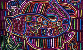 I had seen a few pictures of this type of applique but hadn’t realised where it originated from or the intricacies of the designs. It was difficult to chose one to illustrate an example of Mola embroidery, but I decided to select two with an animal motif and two with a geometric motif as they are each commonly occurring themes:-